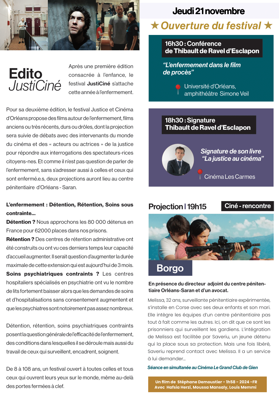 ? Le festival du JustiCiné est de retour au mois de novembre 2024 sur le thème de l’enfermement.