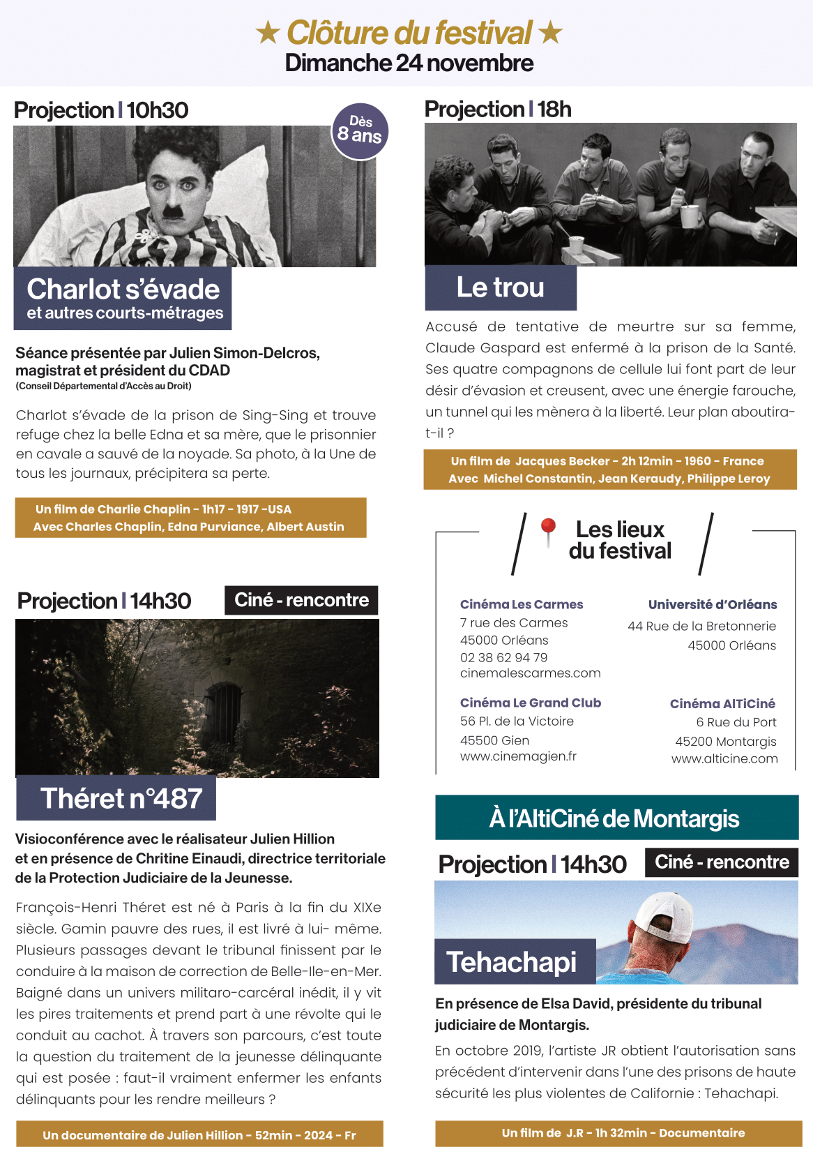 ? Ce festival se tiendra du 21 au 24 novembre 2024 en partenariat avec les cinémas des Carmes à Orléans, du Grand Club à Gien et de l’AltiCiné à Montargis.